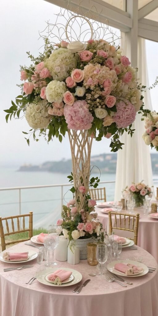 1. Soft Floral Centerpieces with Refined Structure
