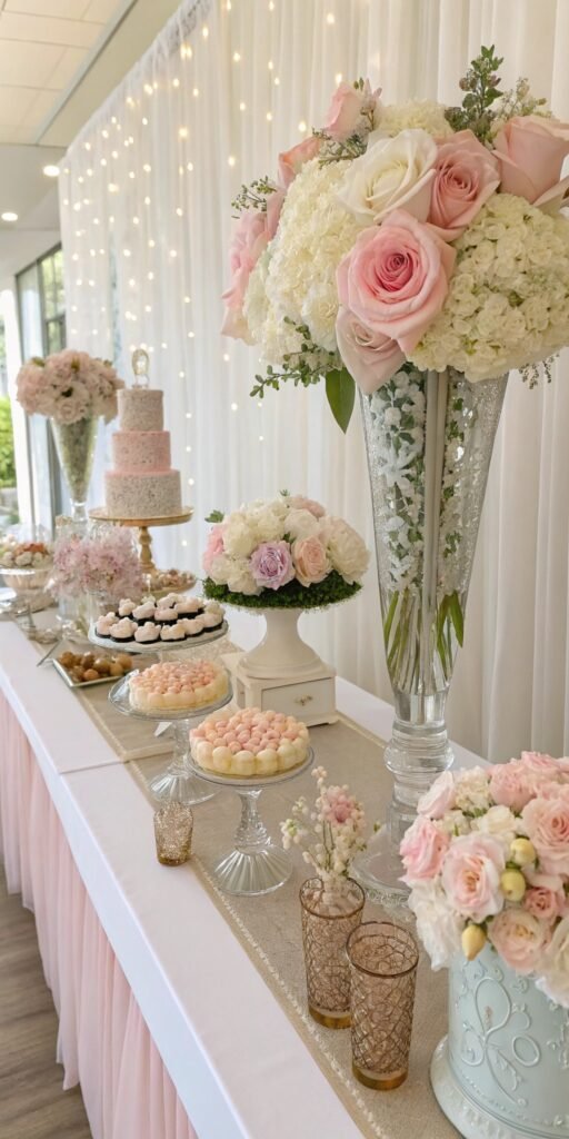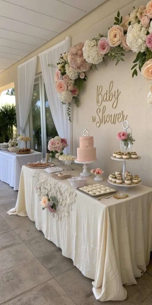 Elegant Baby in Bloom table decor works because it blends softness with refinement. The florals, lighting, and gentle color palettes create setups that feel polished yet welcoming. It’s sophistication without stiffness.
