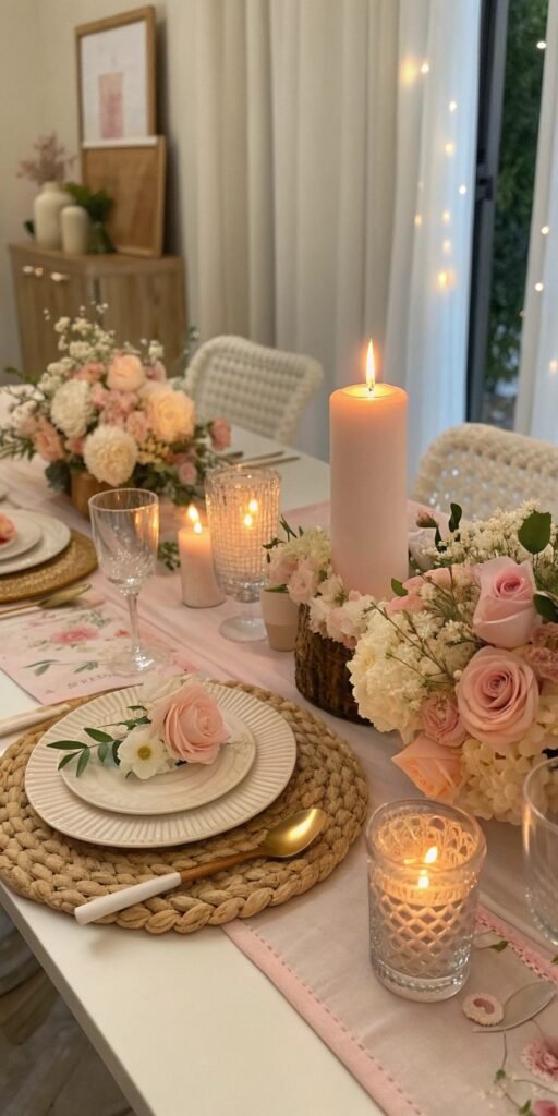 Candles and florals together feel magical. I love how glow highlights delicate petals softly. The table feels warm and romantic. Lighting enhances texture. Doesn’t soft light transform decor entirely? This pairing never fails.