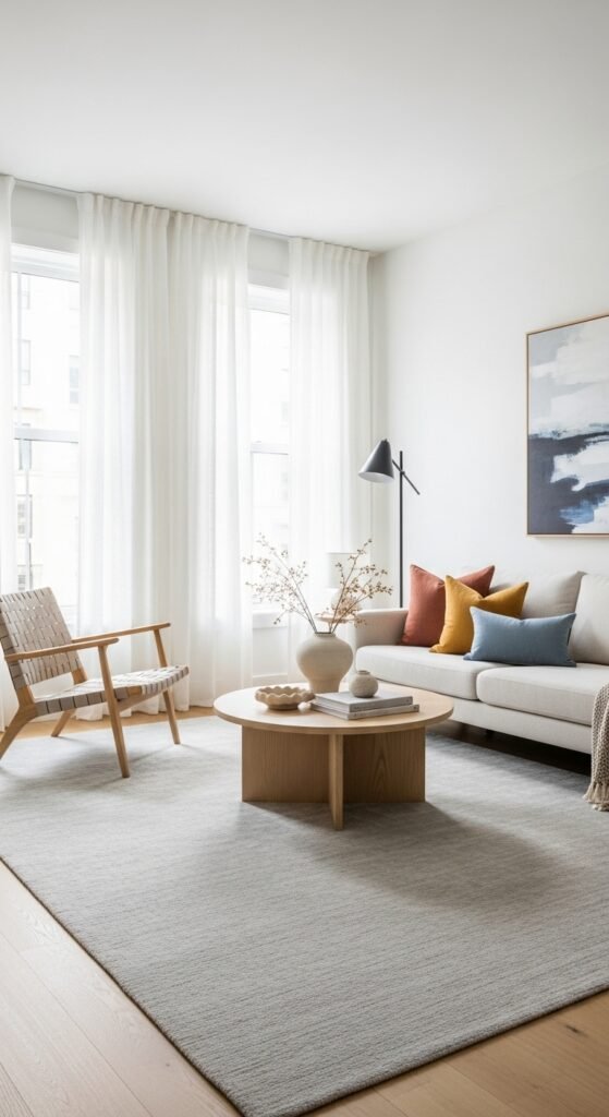 Rugs that stay within one neutral shade create instant visual calm. I love how nothing competes for attention. The space feels smooth and cohesive. Everything blends effortlessly. Doesn’t harmony make a room feel peaceful? Monochrome keeps things grounded.