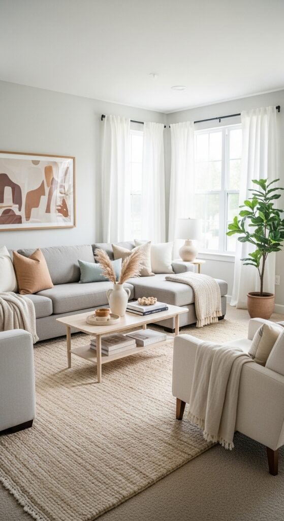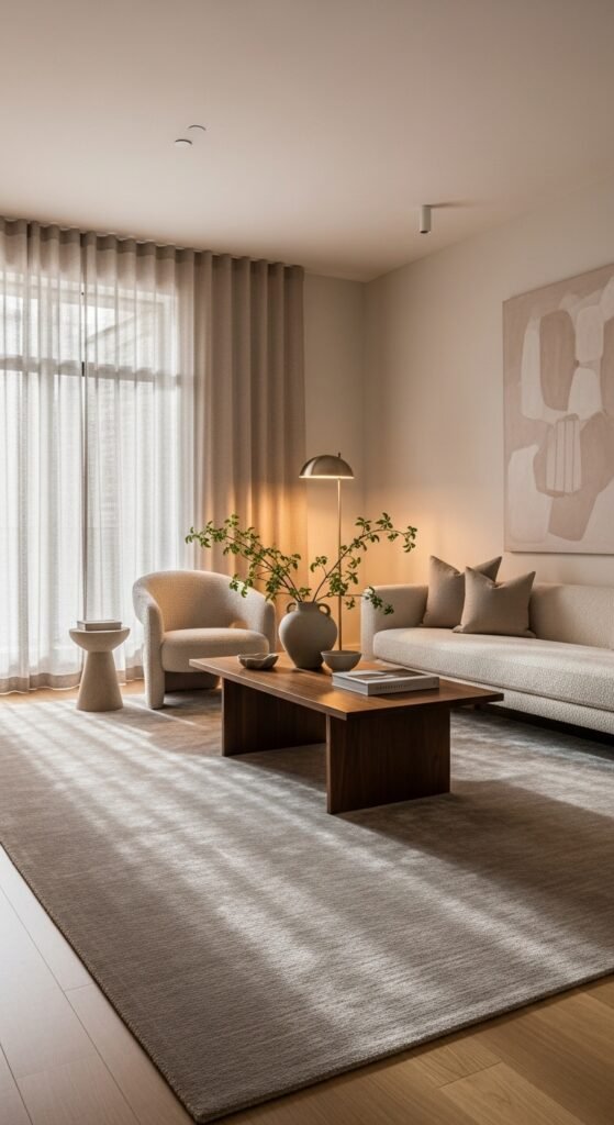 1. Warm Beige Rugs for Soft Grounding