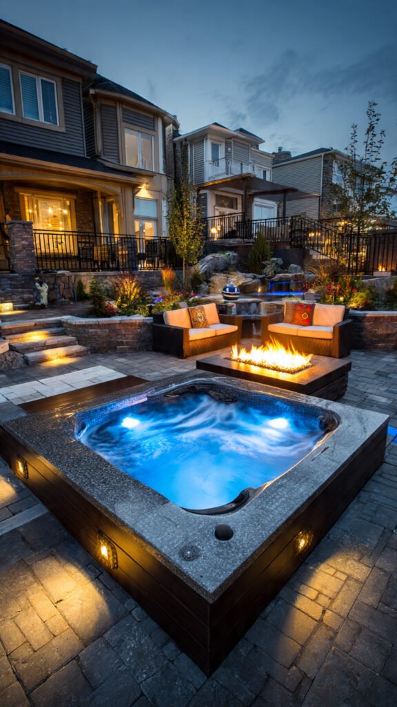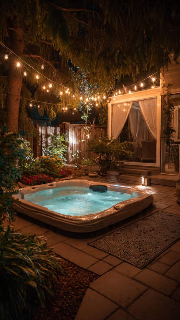 Lighting completely transforms how a jacuzzi feels at night. I love warm, low lighting that creates a glow instead of glare. The backyard feels calm and intimate. Even simple designs feel elevated. Doesn’t lighting define luxury? It absolutely does.