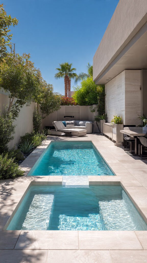 A jacuzzi connected to a pool feels ultra-luxurious. I love how it creates a seamless water experience. The backyard feels like a private resort. Movement flows naturally. Doesn’t continuity make spaces feel more high-end? This setup always impresses.