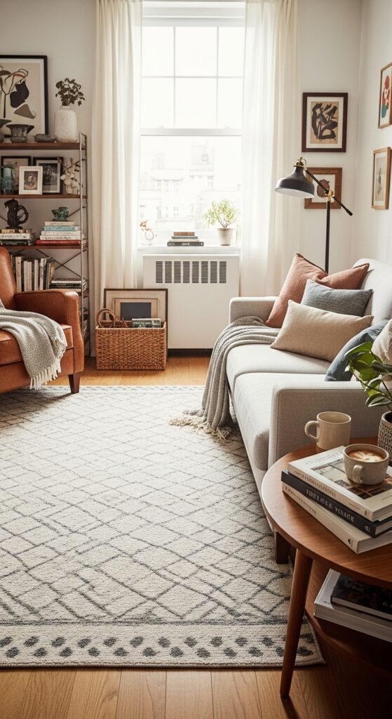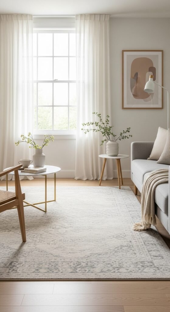 Neutral-patterned rugs give you the best of both worlds—interest and balance. I love beige, gray, or taupe patterns that add depth quietly. The room feels layered. It stays flexible for future decor changes. Doesn’t versatility matter? These rugs age beautifully.