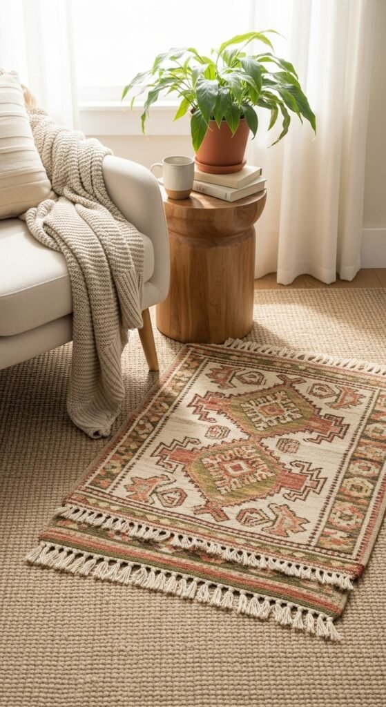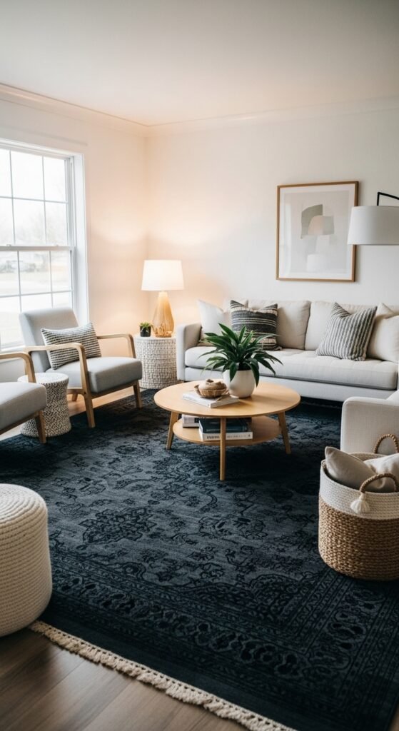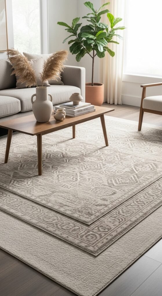 Layering rugs instantly adds dimension and design confidence. I love pairing a simple base rug with a smaller patterned one on top. The space feels styled and cozy. It adds visual interest fast. Doesn’t layering make a room feel richer? It’s a designer favorite.