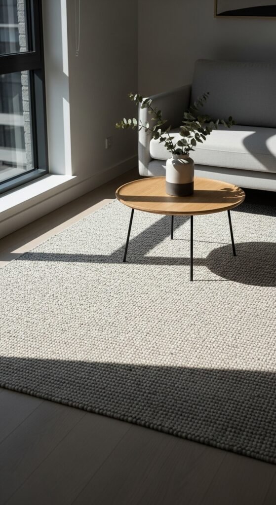 Monochrome rugs create instant visual calm. I love rugs that stay within one color family because they make rooms feel cohesive. The space looks clean and intentional. Nothing feels busy. Doesn’t simplicity always feel elevated? This is minimalism done right.