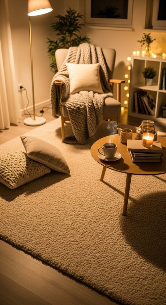 A soft, plush rug instantly makes a room feel inviting. I love how it encourages you to slow down and relax. The space feels warmer and more comfortable. It adds emotional comfort. Doesn’t softness change how a room feels? Comfort can be luxurious too.